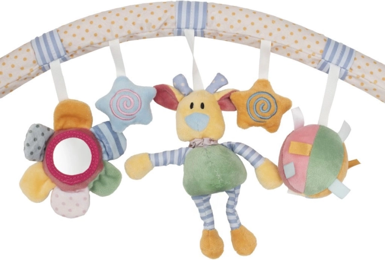 Schattige speelboog voor de kinderwagen met motieven van bloemen, een beertje en sterretjes van BABY MIX die elk kleintje zal verrukken. Dankzij twee clips bevestig je hem eenvoudig aan een kinderwagen, wipstoel of autostoeltje. Vrolijke kleuren en zachte pluchen materialen stimuleren de zintuigen, ondersteunen de fijne motoriek en zorgen voor vermaak onderweg en thuis.