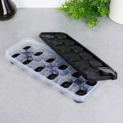 Deze afsluitbare ijsvorm met afmetingen 25 × 10 × 3,5 cm is een geweldige hulp in elk huishouden. Het deksel met praktische vulopening zorgt voor comfortabel vullen en een gelijkmatige verdeling van het water over alle vakjes, terwijl de afdichtende constructie morsen en het opnemen van geuren uit de vriezer minimaliseert.