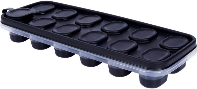 Praktische ijsvorm met deksel en schenktuit voor eenvoudig vullen zonder morsen. Maakt tot 12 ijsblokjes, heeft veilige materialen geschikt voor contact met voedsel en gemakkelijk uitnemen dankzij de siliconen bodem. Ideaal voor water, dranken en cocktails, ook geschikt voor het invriuwen van vruchtensappen en sorbets.