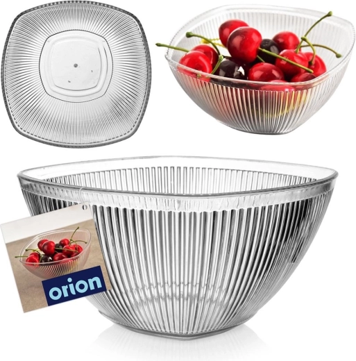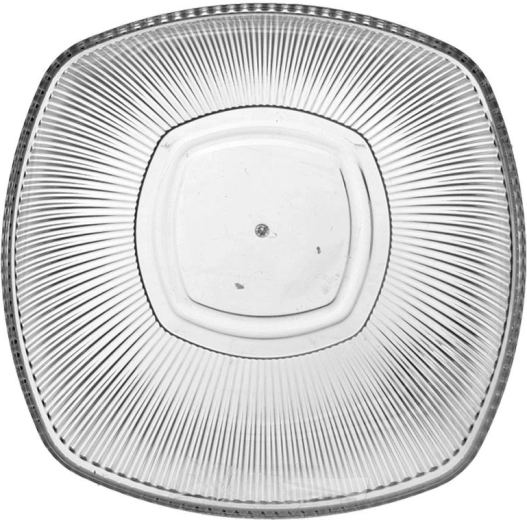 Stijlvolle serveerkom met een vierkante, afgeronde vorm en verticale ribbeling die prachtig staat op tafel, zowel binnen als buiten. Transparant acryl accentueert de kleuren van de gerechten en dankzij de textuur ligt de kom prettig in de hand.