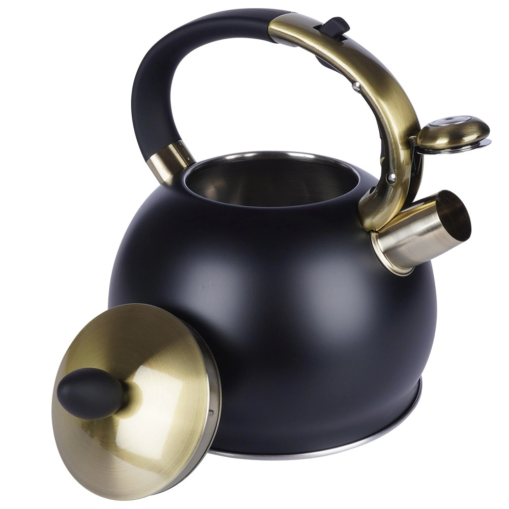 Deze stijlvolle ketel is gemaakt van hoogwaardig roestvrij staal, dat duurzaam en smaakneutraal is. Dankzij de combinatie van mat zwart en gouden accenten wordt het een designstatement in uw keuken – modern of klassiek. De praktische afneembare deksel vergemakkelijkt het bijvullen en reinigen.