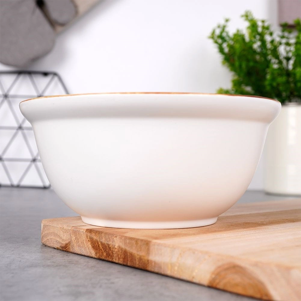 De subtiele bruin-gouden rand geeft de kom een tijdloze look die zowel bij dagelijks dineren als bij feestelijke gelegenheden opvalt.
