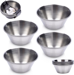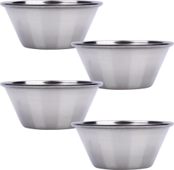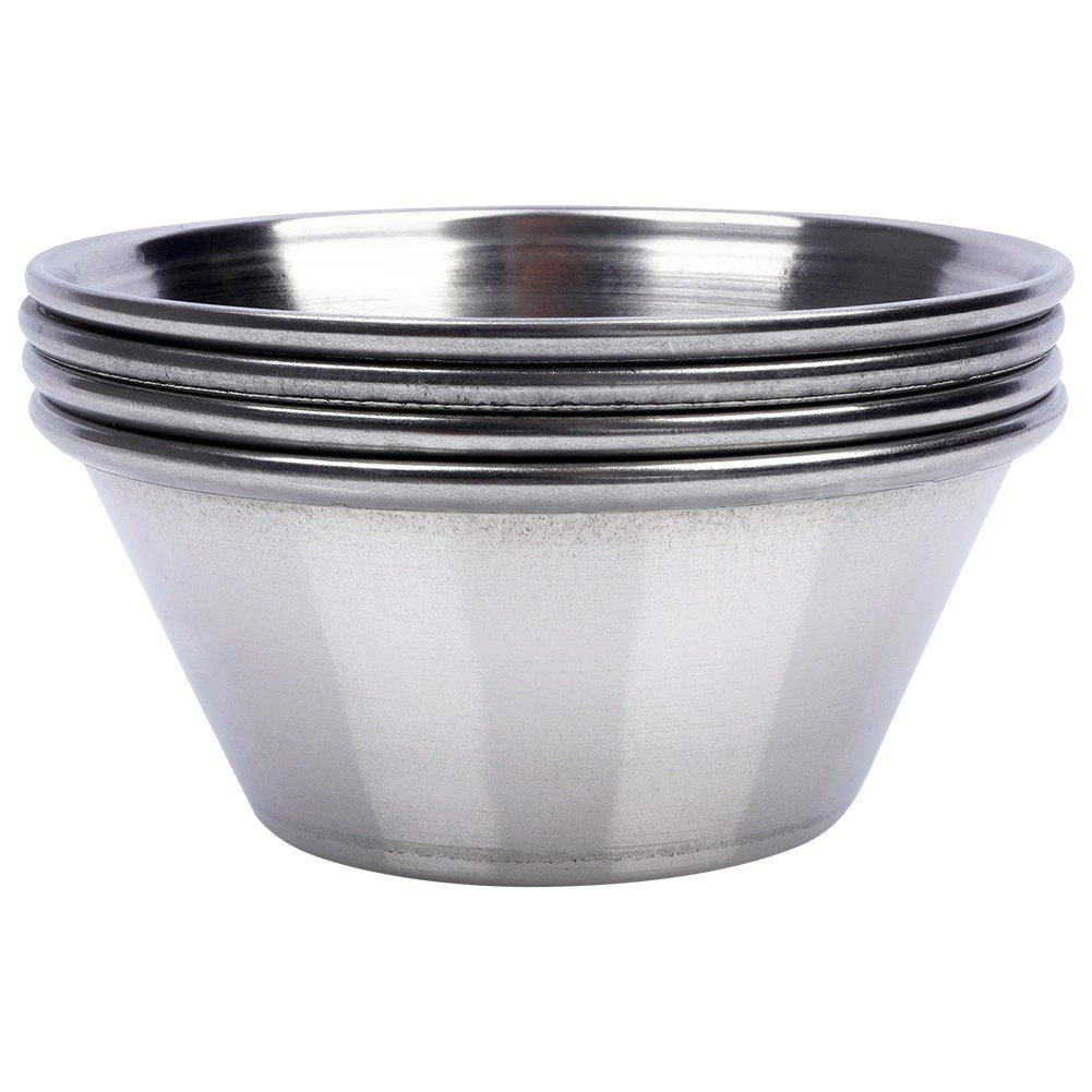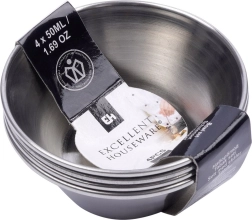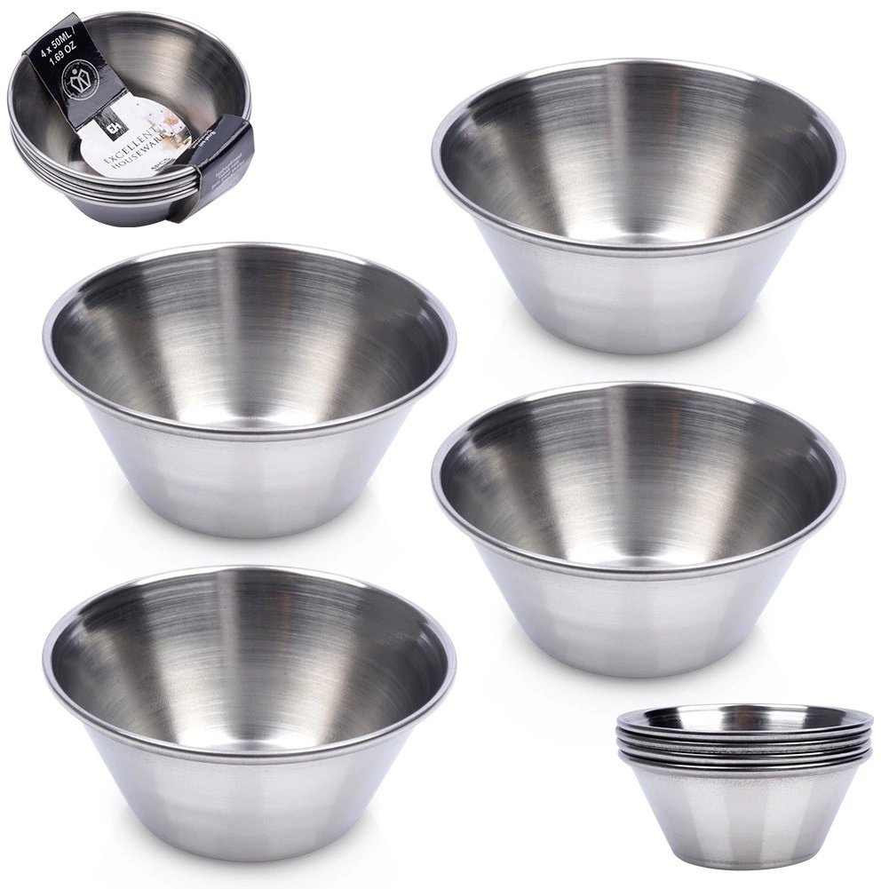 De set van vier kleine roestvrijstalen schaaltjes is ideaal voor het serveren van dips, sauzen, dressings en kleine porties voorgerechten. Dankzij de compacte afmetingen en het universele design passen ze op elke tafel – van dagelijks dineren tot feesten en horeca. Het gepolijste buitenoppervlak zorgt voor een modern en elegant uiterlijk, terwijl de matte binnenkant de zichtbaarheid van gebruikssporen minimaliseert.