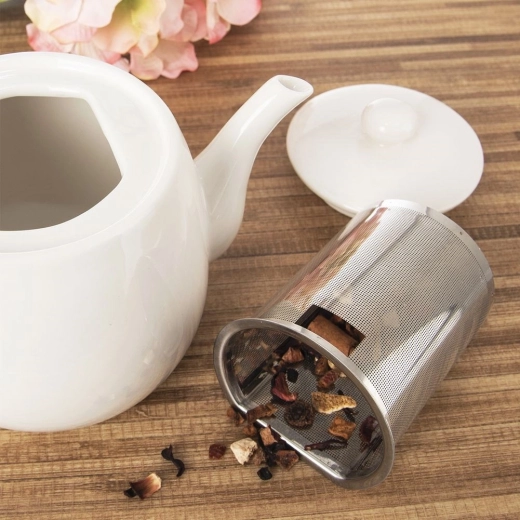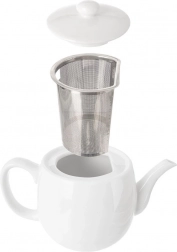 De theepot is gemaakt van hoogwaardig wit porselein, dat prachtig bij iedere tafelsetting past en gemakkelijk te reinigen is. De theepot zelf (zonder filter) is vaatwasbestendig en kan in de magnetron worden gebruikt. Ideaal als een stijlvol cadeau voor theeliefhebbers.