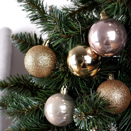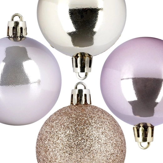 Met deze stijlvolle set ballen creëer je moeiteloos een betoverende kerstsfeer in de boom, kransen en feestelijke arrangementen. Het roségouden palet en de mix van afwerkingen (glans en glitter) zorgen voor een moderne en elegante look die past in zowel klassieke als hedendaagse interieurs.