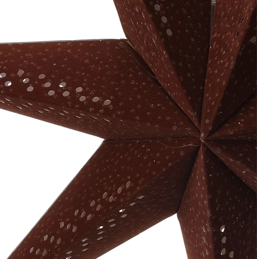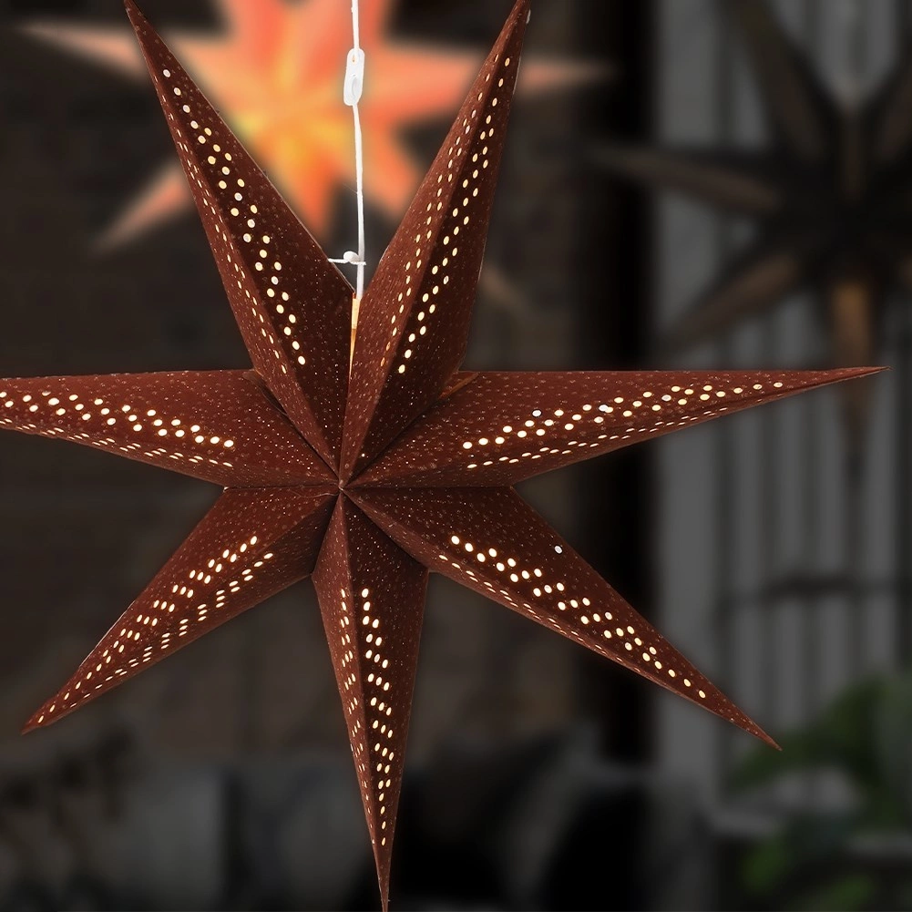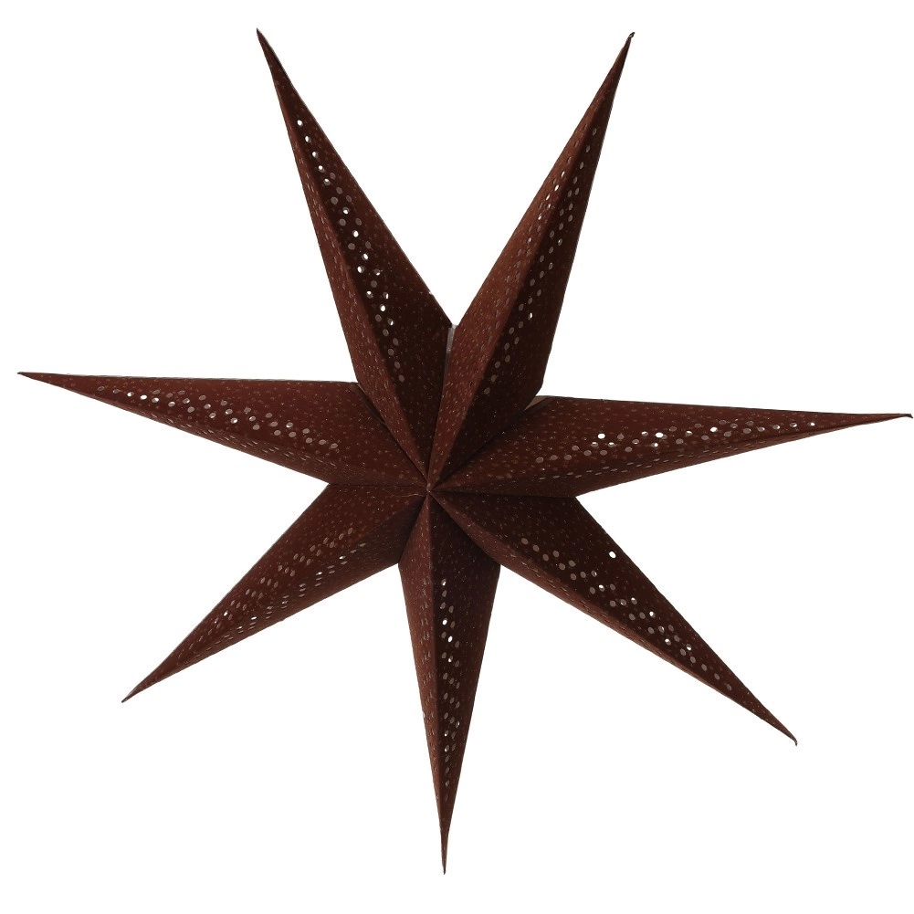 Deze decoratieve papieren 3D-ster wordt de blikvanger van je huis tijdens Kerst én het hele jaar door. De zachte fluwelen afwerking in bruintint met gouden glinsteraccenten oogt luxueus, terwijl het geperforeerde patroon het licht doorlaat en voor betoverende lichteffecten zorgt.
