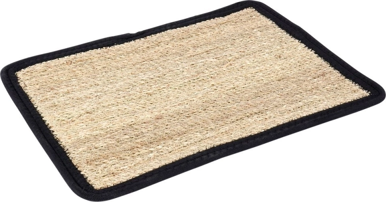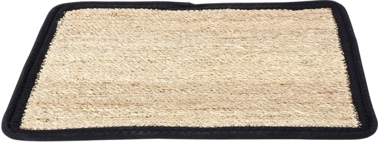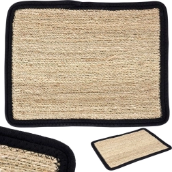 Stijlvolle tafelplacemat van zeegras met een zwarte katoenen bies in het formaat 46 × 35 cm. Beschermt het tafelblad en geeft het een natuurlijke uitstraling. Hij is duurzaam, makkelijk schoon te maken met een vochtige doek en past perfect in boho-interieurs, de keuken en de eetkamer. Ideaal onder borden, mokken en vazen en creëert tegelijk een decoratief en antislip oppervlak.
