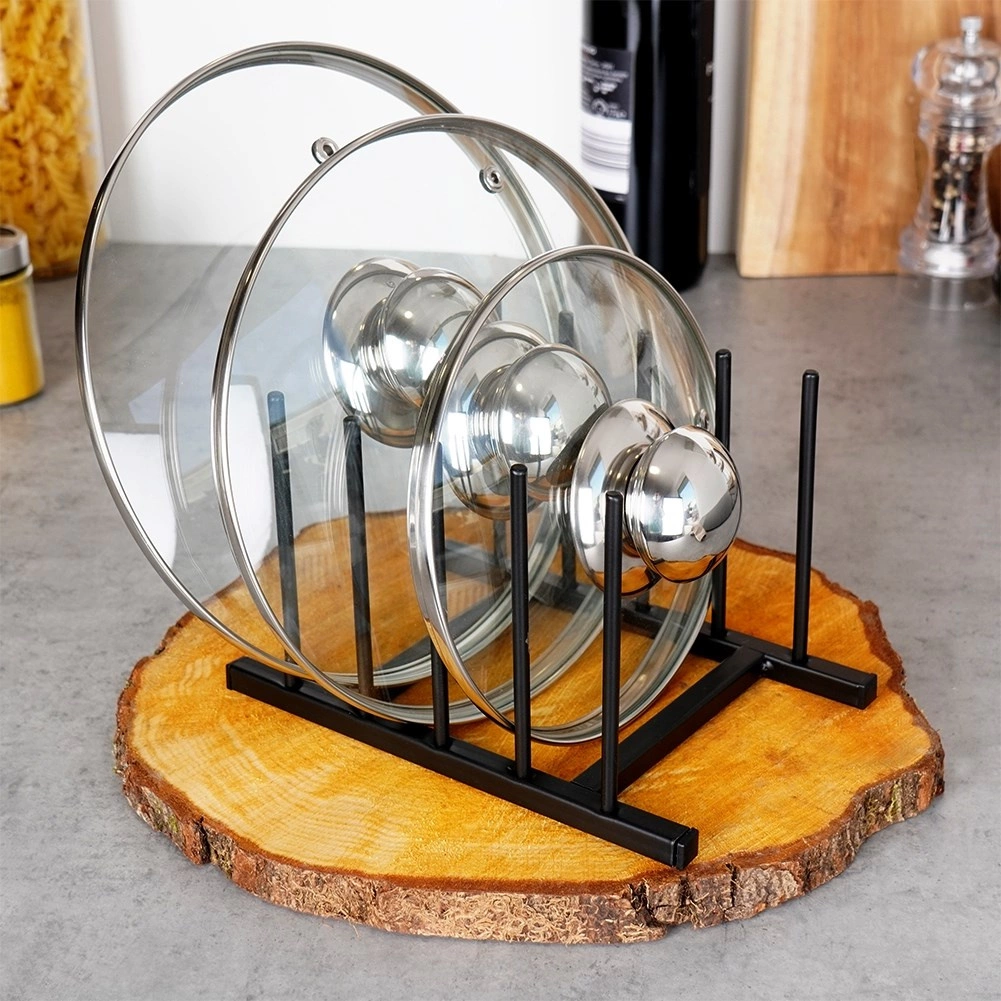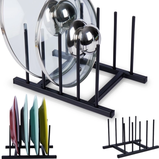 Breng rust in je keuken en houd deksels en borden altijd binnen handbereik. Het metalen rek met stevige rechthoekige basis houdt servies verticaal, bespaart ruimte en zorgt voor voldoende luchtcirculatie voor gemakkelijk drogen. Het minimalistische zwarte design past in zowel moderne als klassieke interieurs.