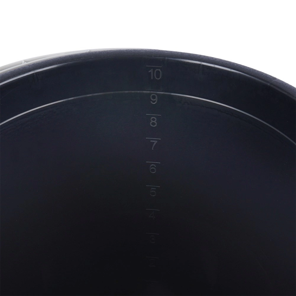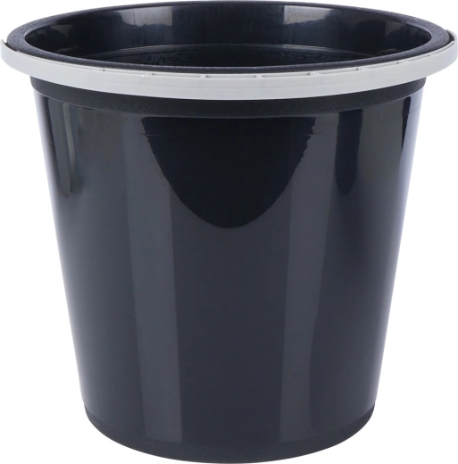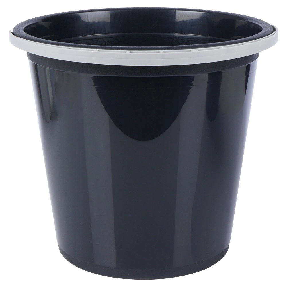 Universele zwarte emmer met ergonomisch grijs handvat voor dagelijks gebruik in huis, tuin en garage. De brede rand maakt eenvoudig vullen en gieten mogelijk, de interne verdeling per 1 liter zorgt voor nauwkeurig afmeten van vloeistoffen. De stevige kunststof constructie is tegelijk licht voor comfortabel dragen.