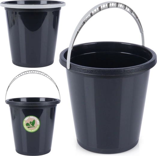 Praktische zwarte emmer voor schoonmaken, ramen wassen, bewateren, in de garage of op de bouw. De lichte maar sterke constructie en het comfortabele grijze handvat zorgen voor prettig dragen en een lange levensduur. Dankzij het universele ontwerp geschikt voor het vervoeren en bewaren van water, reinigingsmiddelen, gereedschap en bulkmaterialen.