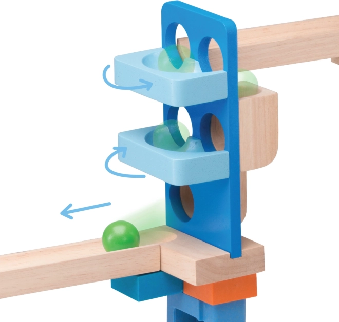 Hoogwaardige materialen, een combinatie van hout en kunststof, garanderen duurzaamheid en een aantrekkelijke kleuruitvoering. De bouwset wordt geleverd in een kartonnen doos met geïllustreerde handleiding en een praktisch kunststof handvat om te dragen. Mogelijke combinaties met andere Wonderworld TRIX®-banen tillen het speelplezier naar een hoger niveau.