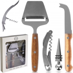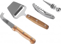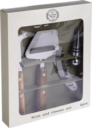 Deze universele set wijn- en kaasaccessoires combineert kwaliteit, functionaliteit en tijdloos design. De kurkentrekker zorgt voor snel en veilig openen van wijn en het verwijderen van kroonkurken, de dop behoudt de versheid en het aroma van geopende flessen. Het mes en de schaaf maken nauwkeurig snijden mogelijk, van zachte tot harde kazen.