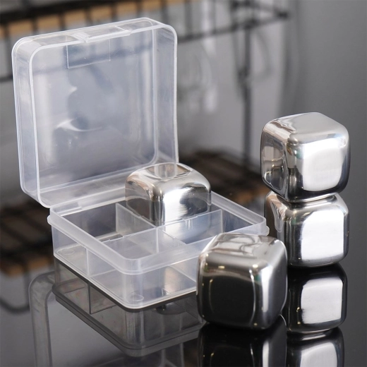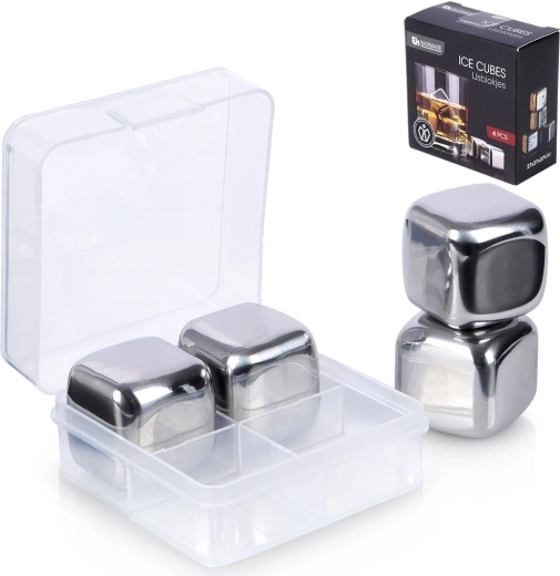 Elegante roestvrijstalen koelblokjes koelen whisky, cocktails en limonades betrouwbaar zonder onnodige verdunning. Ze zijn herbruikbaar, eenvoudig te reinigen, hebben gladde, afgeronde randen en worden geleverd in een praktische opbergdoos voor veilige en hygiënische opslag.