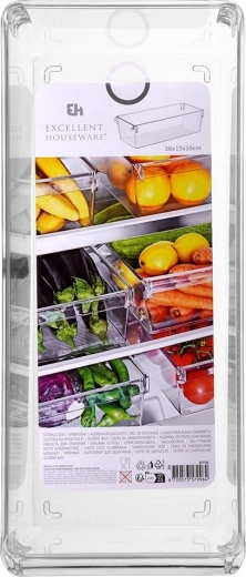 Praktische koelkastorganizer met afmetingen 36 × 15 × 10 cm, gemaakt van transparante, voedselveilige kunststof. Zorgt voor overzichtelijke opslag van etenswaren, gemakkelijk uitschuiven dankzij geïntegreerde handgrepen en snelle controle van de inhoud. Ideaal voor fruit, groenten en andere levensmiddelen, met een duurzame uitvoering en eenvoudig onderhoud.