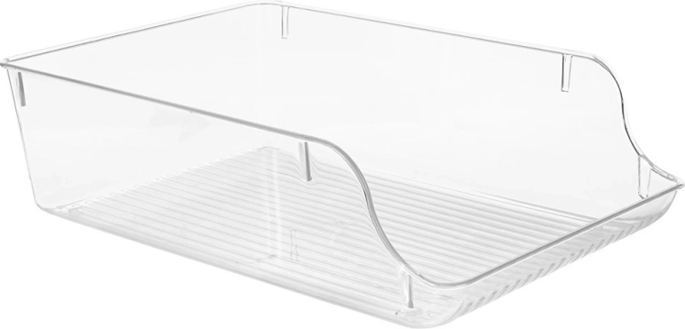 Breng orde in je koelkast en voorraadkast. Deze transparante organizer met geïntegreerde handgrepen en een lage voorrand biedt snelle toegang tot opgeslagen etenswaren, terwijl de geribbelde bodem helpt de inhoud op zijn plaats te houden. De robuuste kunststof is voedselveilig en gemakkelijk schoon te maken.