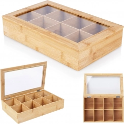 De doos is gemaakt van hoogwaardig natuurlijk bamboe in combinatie met MDF, heeft stevige metalen scharnieren voor comfortabel openen en sluiten en staat garant voor een lange levensduur. Perfect voor thuis, kantoor en cafés en ook een uitstekend cadeau voor theeliefhebbers.