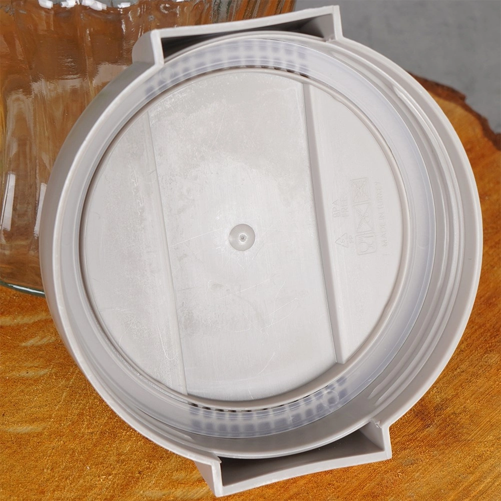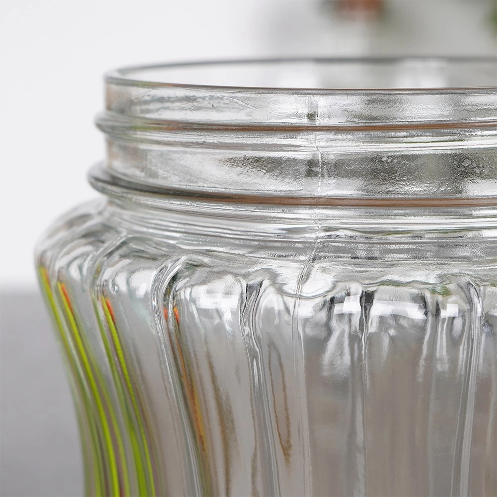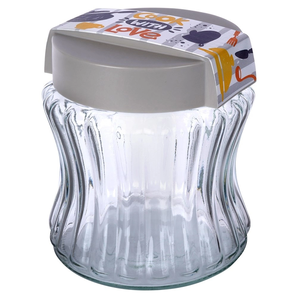 Stijlvolle glazen pot met een golvend reliëf en lichtgrijze deksel, ideaal voor het bewaren van meel, suiker, zout, paneermeel, noten, koffie of thee. Stevig, helder glas zonder BPA is voedselveilig en maakt onmiddellijke controle van de inhoud mogelijk zonder te openen.