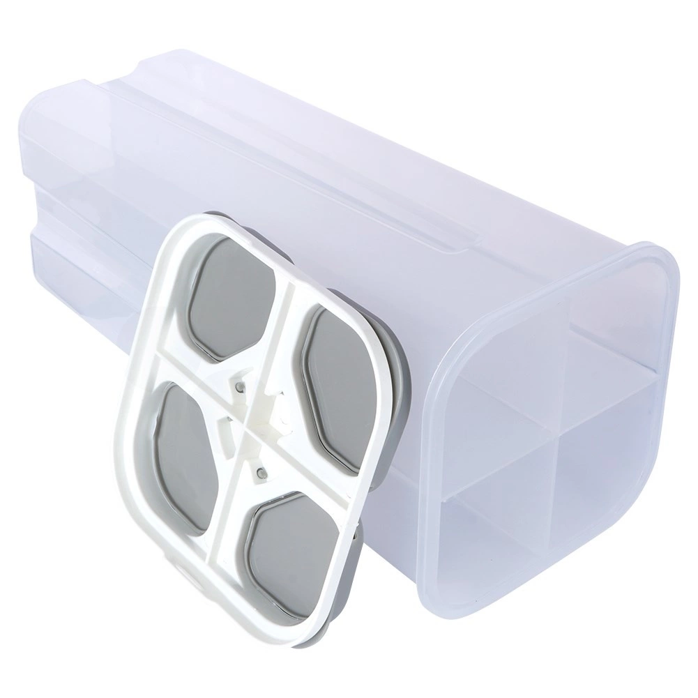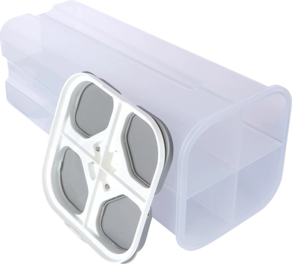 Houd orde in de keuken met een slimme voorraadbus die tot vier verschillende droge producten in één compact lichaam bewaart. Elk vak heeft een eigen doseerdeksel voor snel en precies uitgieten zonder het hele deksel te openen. De transparante wanden maken directe controle van de voorraad mogelijk.