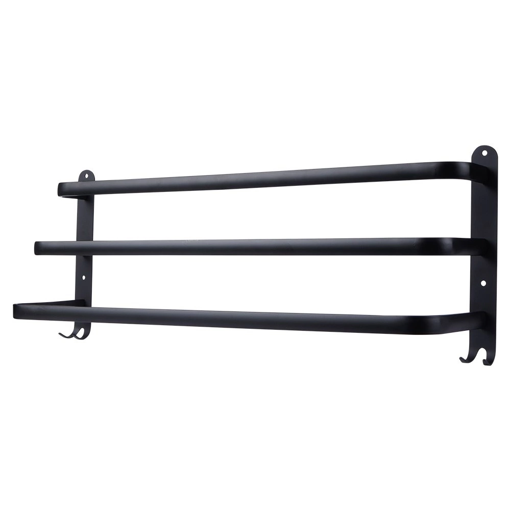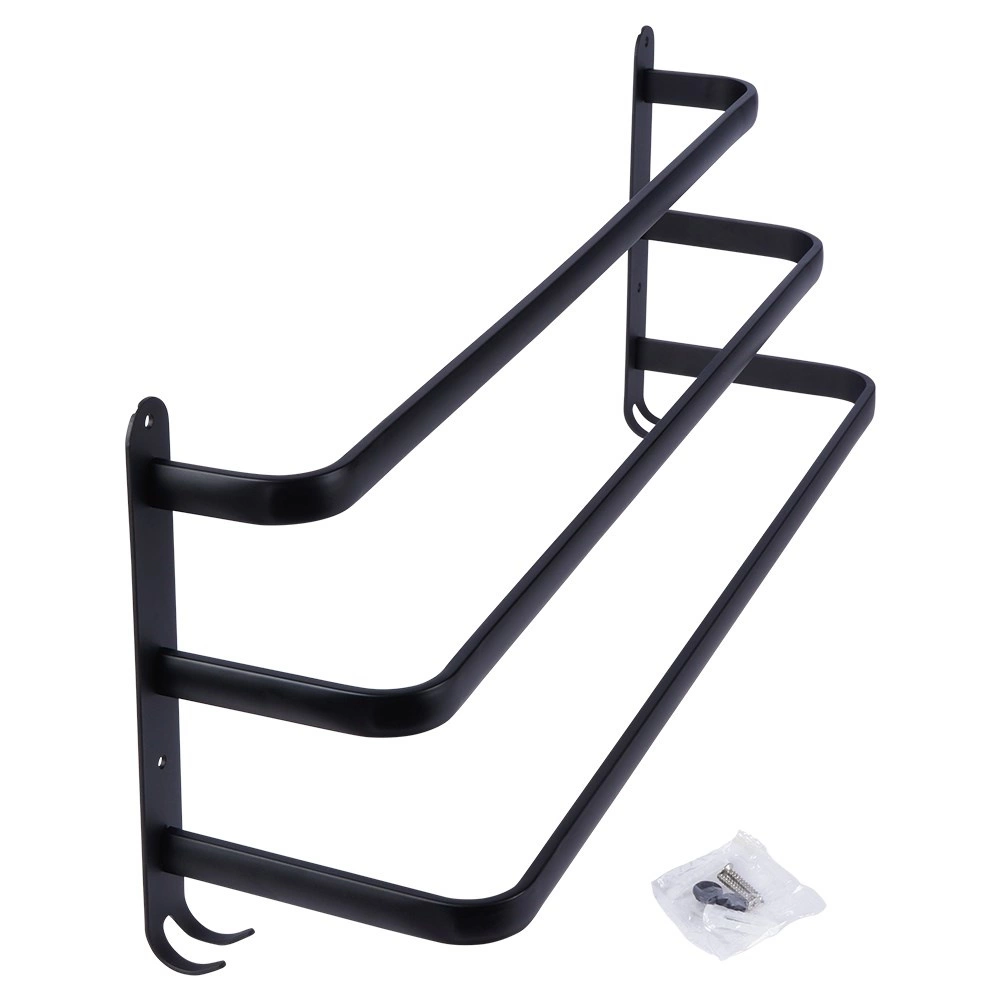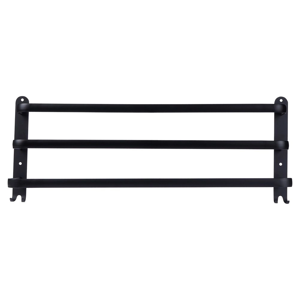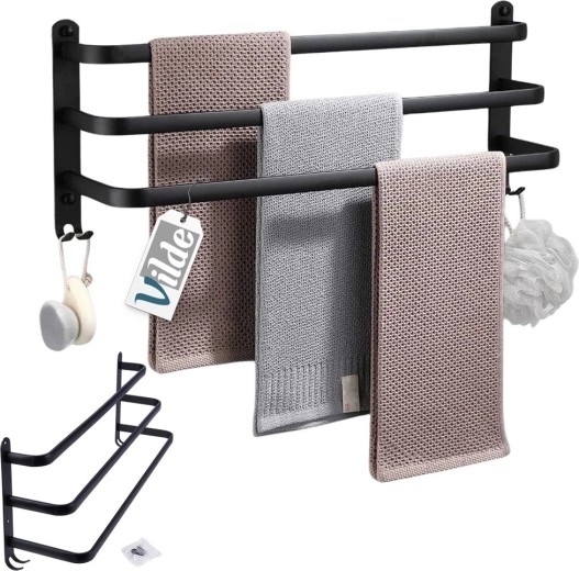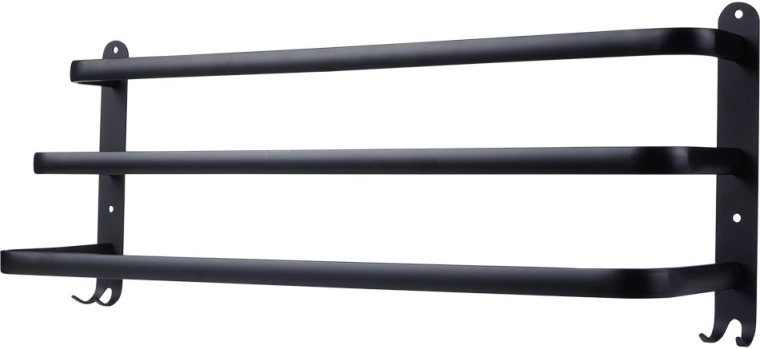 Praktische en elegante handdoekhouder met drie parallelle armen biedt volop ruimte om te drogen en te organiseren. De vier onderste haken zijn perfect voor washandjes, borstels of andere badkameraccessoires. De duurzame afwerking in mat zwart accentueert moderne, industriële en ook klassiek ingerichte badkamers.