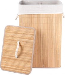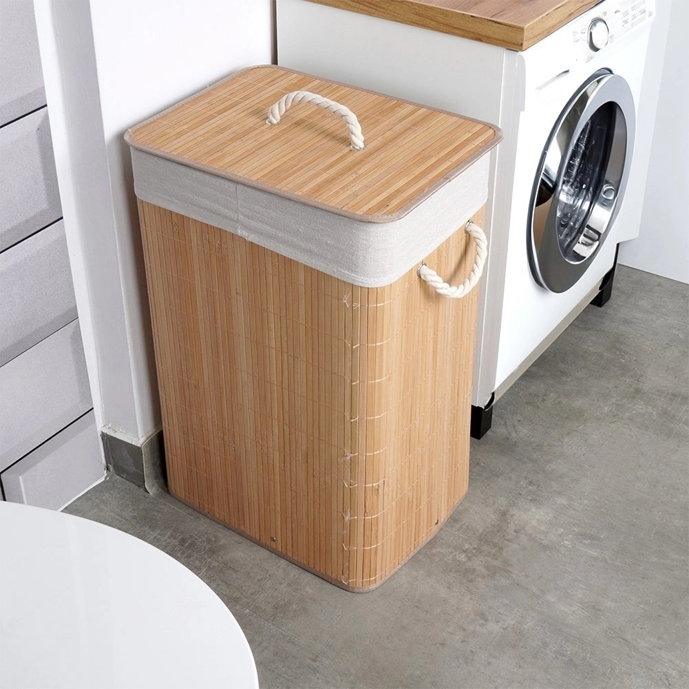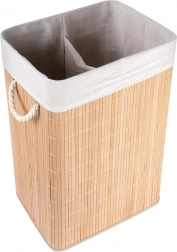 Houd het netjes in stijl. Deze beige bamboe wasmand combineert een natuurlijke look met praktische details die elk huishouden waardeert. Dankzij de twee compartimenten sorteer je gemakkelijk licht en donker wasgoed; de afneembare deksel helpt de ruimte fris te houden.