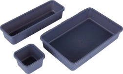 Dankzij het slijtvaste plastic met glad oppervlak zijn de organizers gemakkelijk te onderhouden, krassen ze de inhoud niet en kun je ze bij niet-gebruik eenvoudig in elkaar schuiven, zodat ze minimale ruimte innemen. De grafietkleur oogt modern en past bij de meeste interieurs.