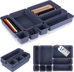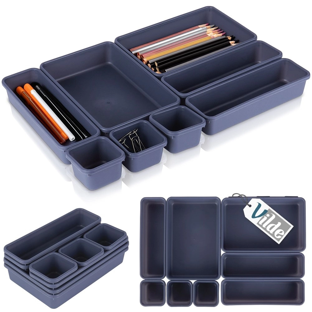 De verschillende groottes van de bakjes stel je precies af op de afmetingen van de lade. Scheid eenvoudig pennen, paperclips, kabels en cosmetica, zodat alles overzichtelijk binnen handbereik ligt.