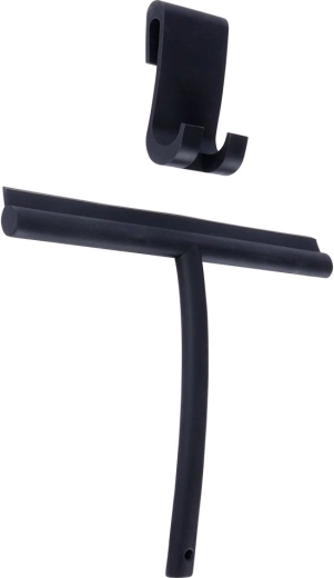 Praktische siliconen raamtrekker met haak om op te hangen houdt je douche, ramen en spiegels streeploos en zonder druppels. Dankzij de fijne ergonomie en het krassvrije siliconen blad zorgt hij voor snelle, schone en streeploze verwijdering van water en zeepresten. Het stijlvolle zwarte design past in elke moderne badkamer.