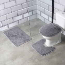 Geef je badkamer extra comfort en veiligheid. De driedelige matten-set biedt een zacht en warm oppervlak onder de voeten en beschermt tegelijk tegen koude vloeren. De neutrale grijze tint laat zich makkelijk combineren met elke stijl.