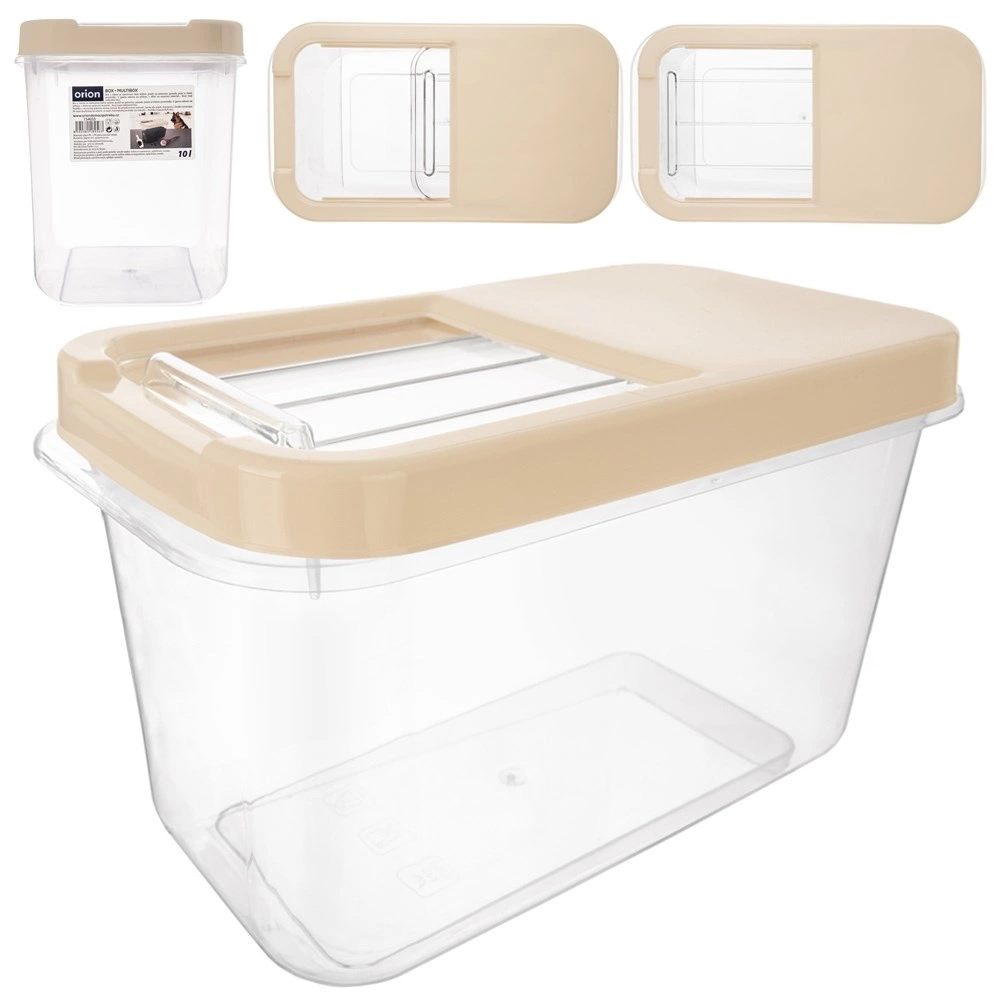 Breng orde in keuken, voorraadkast en badkamer met de universele voorraadbak van 10 l. De transparante uitvoering laat je de voorraad snel controleren, terwijl het schuifdeksel zorgt voor comfortabele en snelle toegang zonder de hele box te openen. Ideaal voor pasta, meel, ontbijtgranen, rijst, maar ook voor wasmiddelen, vaatwastabletten of brokjes en snacks voor huisdieren.