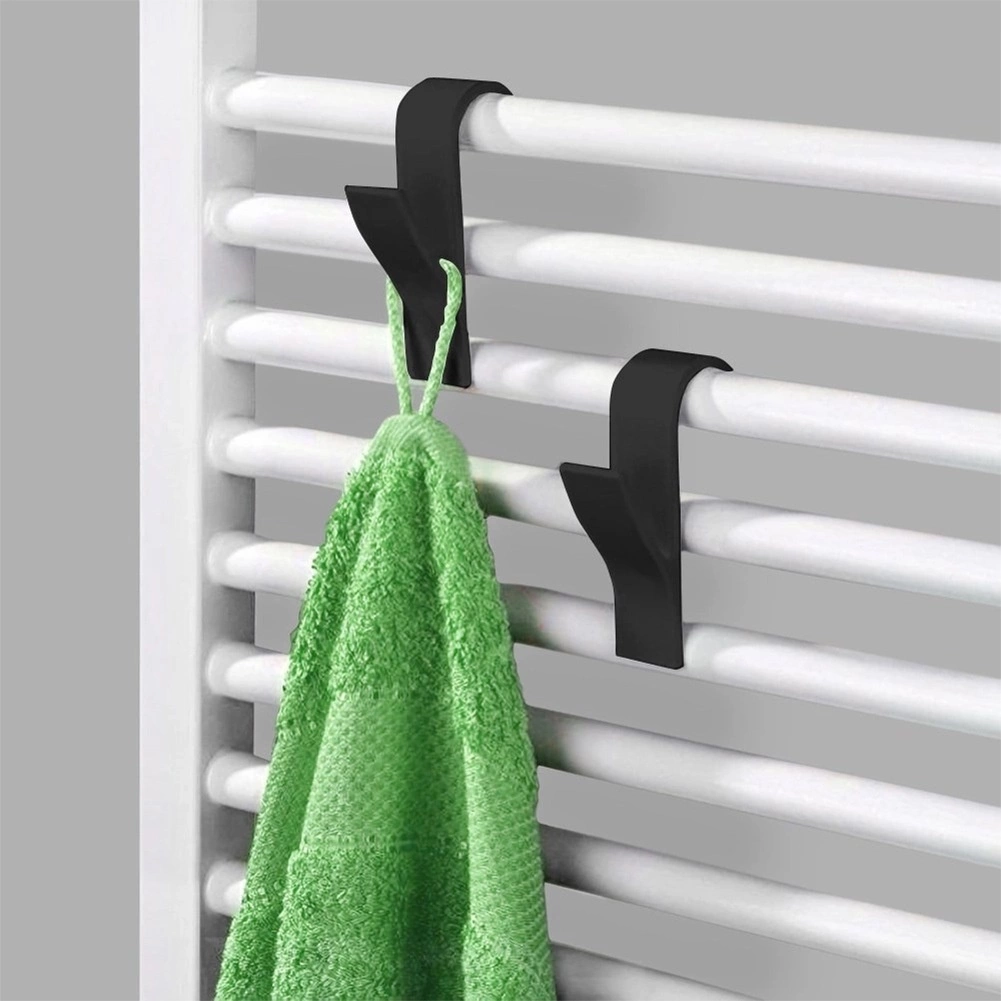 Geniet van meer ruimte en sneller drogen met deze universele radiatorhaken. Dankzij het slimme ontwerp schuif je ze eenvoudig op zowel leden- als plaatradiatoren, of hang je ze over de bovenzijde van deuren of kastdeurtjes. De duurzame uitvoering in matzwart past perfect bij moderne interieurs.