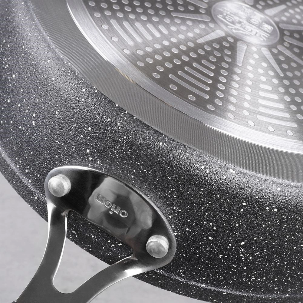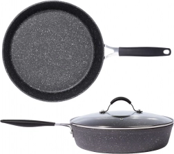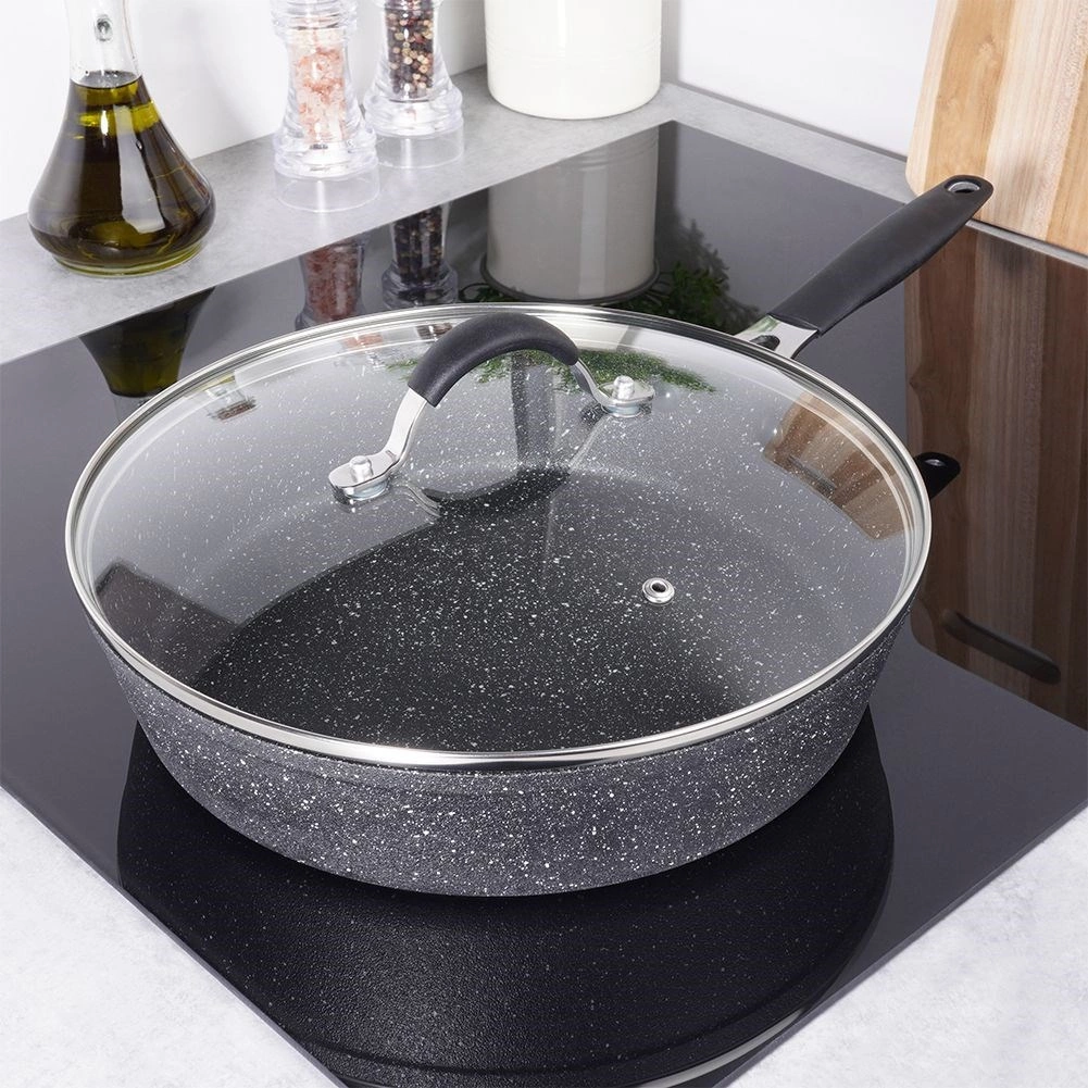 Deze robuuste granieten pan is ideaal voor dagelijks koken – van bakken en roerbakken tot stoven en het inkoken van sauzen. Dankzij de antiaanbak steenlaag bereid je gezonde en smakelijke gerechten met minimaal vet, zonder aanbranden en met een perfecte kleuring.