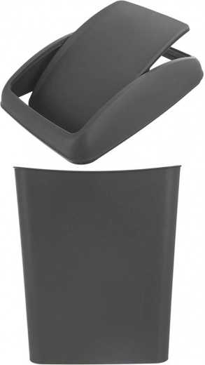 Praktische bak voor klein afval met een kiepende schommelklep, ideaal voor kleine ruimtes. Hij is licht, stabiel en duurzaam, zodat je hem op de vloer, op een werkblad of in een kast kunt plaatsen. Het strakke, tijdloze design in donkergrijs past bij diverse interieurstijlen.
