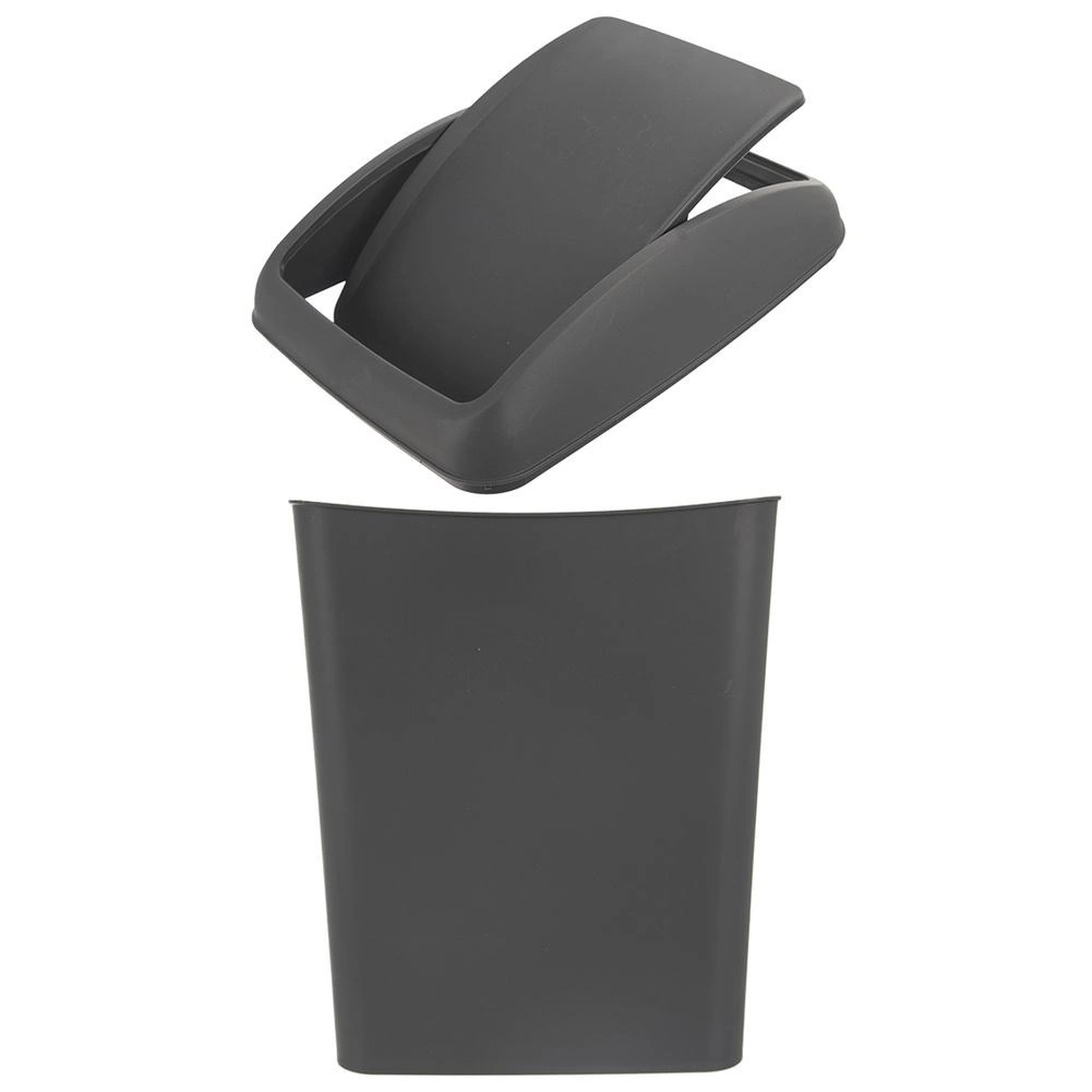 Houd thuis en op kantoor netjes met deze ruime prullenbak van 40 liter. Het matte donkergrijze oppervlak is tijdloos en eenvoudig te combineren met je interieur. Het kiepdeksel maakt zowel weggooien als legen makkelijker en helpt de verspreiding van onaangename geuren te beperken.