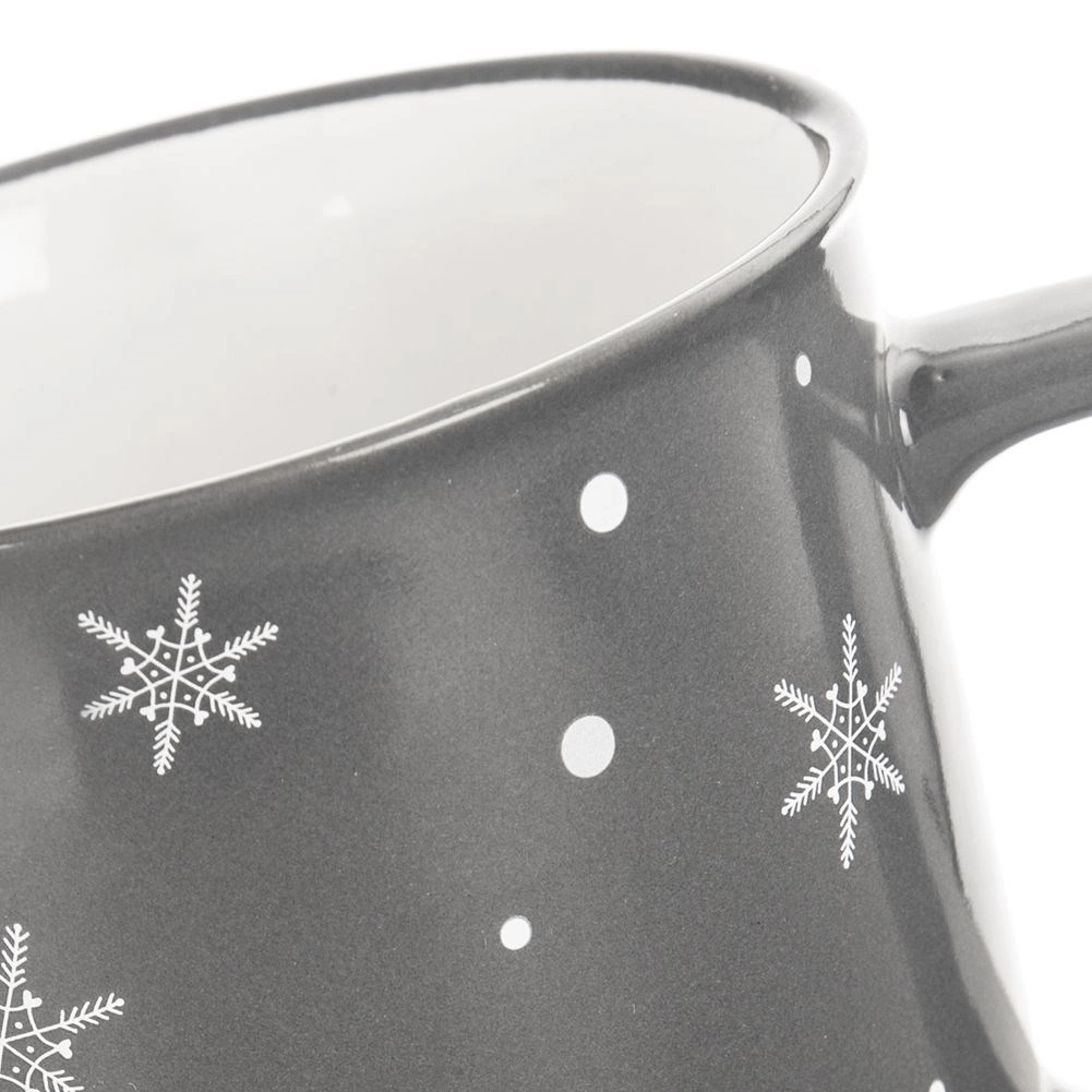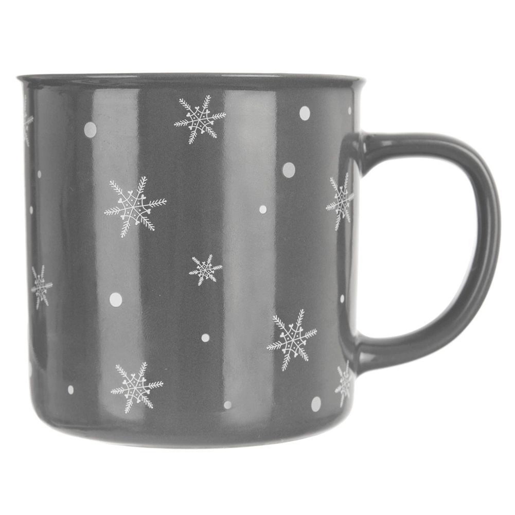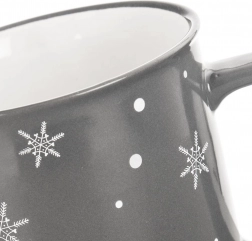 Geniet van je favoriete warme drank in een grote mok met winterdecor die elke tafel gezelliger maakt. De klassieke vorm, comfortabele grip en de inhoud van 500 ml maken hem tot een geweldige metgezel voor lange ochtenden en avonden. Hoogwaardige keramiek in een modieuze grijze kleur met witte vlokken laat zich makkelijk combineren met de rest van je keukenuitrusting.