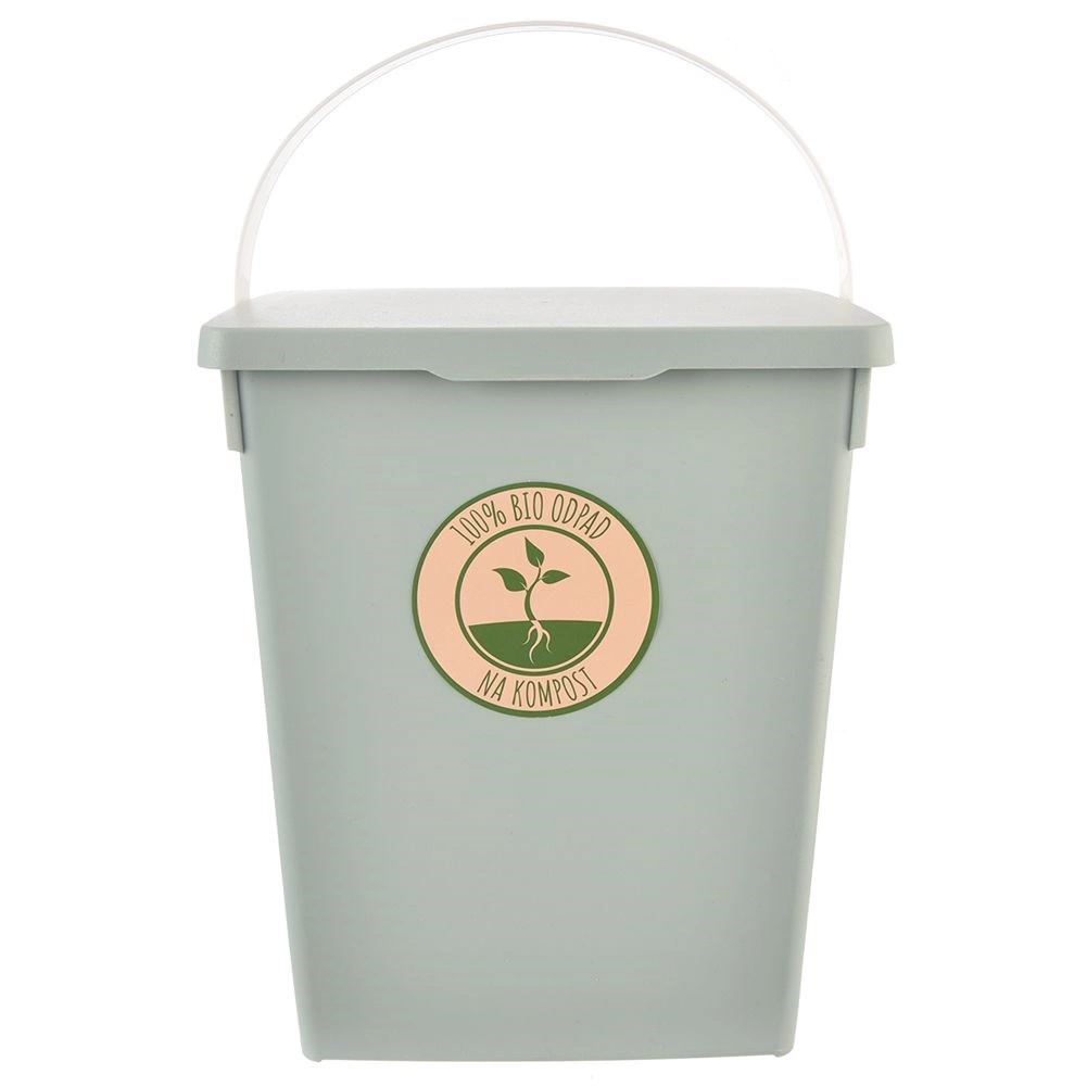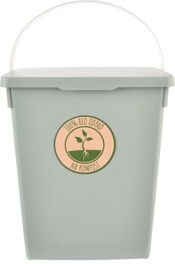 Compacte en praktische bak/doos van 5,5 l voor bioafval en huishoudelijke benodigdheden. Heeft een scharnierend deksel, een comfortabele witte draagbeugel en een duurzame kunststof uitvoering in het groen. Ideaal voor in de keuken, badkamer en op kantoor voor het opbergen van wascapsules, waspoeder, vaatwastabletten, dierenvoer of als compostbak voor organisch afval.