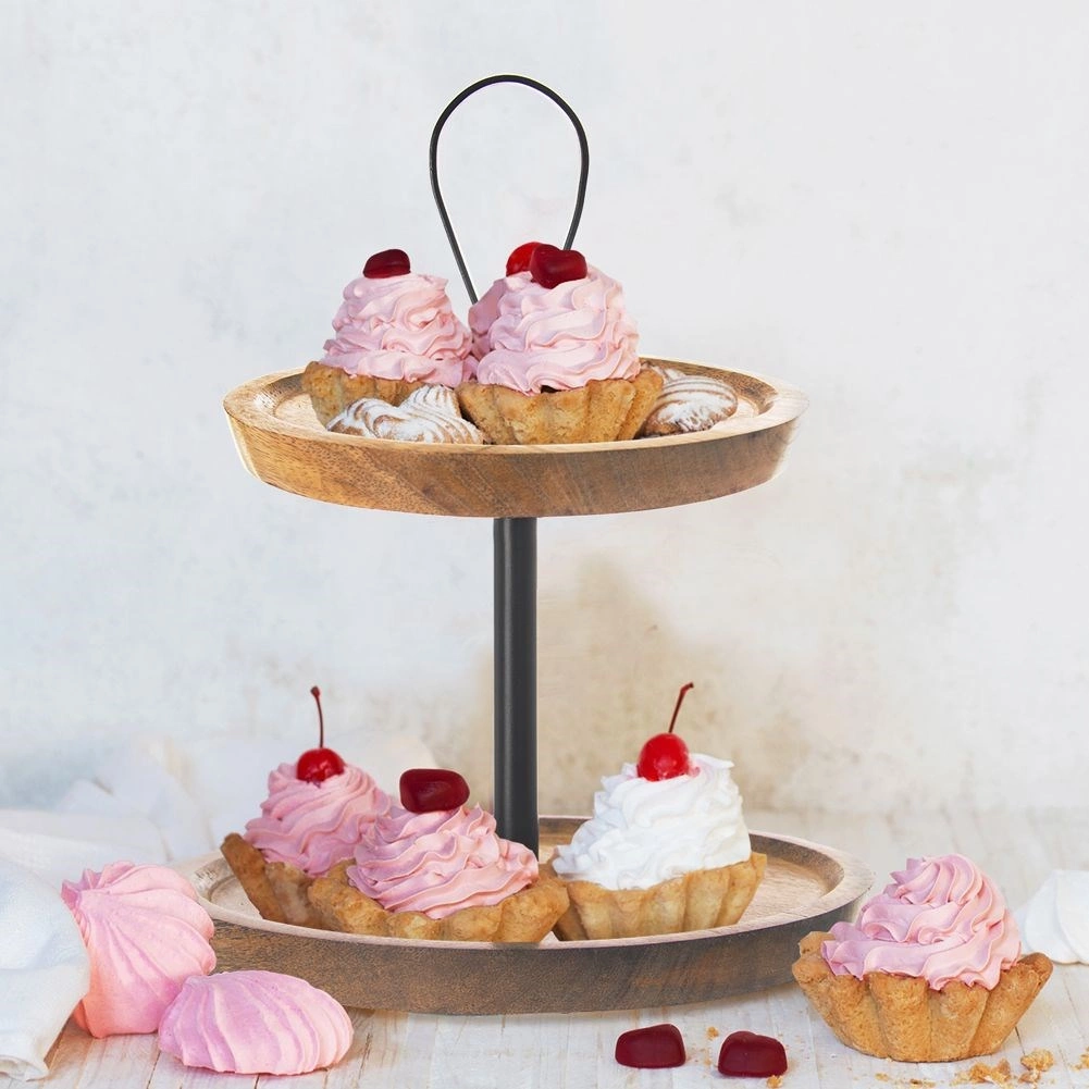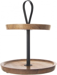 Geef je tafelschikking elegantie en orde. De houten tweelaagse etagère van mangohout laat cupcakes, koekjes, desserts, fruit en hartige canapés mooi uitkomen. Dankzij twee niveaus met verschillende diameters bespaar je eenvoudig ruimte op tafel en behoud je een overzichtelijke presentatie.