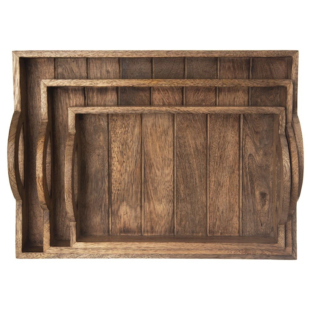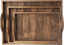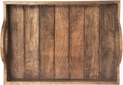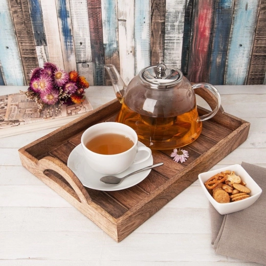 Het rechthoekige serveerblad van mangohout blinkt uit door zijn sterkte, vochtbestendigheid en natuurlijke nerf. Dankzij de geïntegreerde handgrepen draag je koffie, thee, desserts en complete ontbijtjes comfortabel. Antislipvoetjes aan de onderzijde beschermen de tafel en zorgen voor stabiliteit.