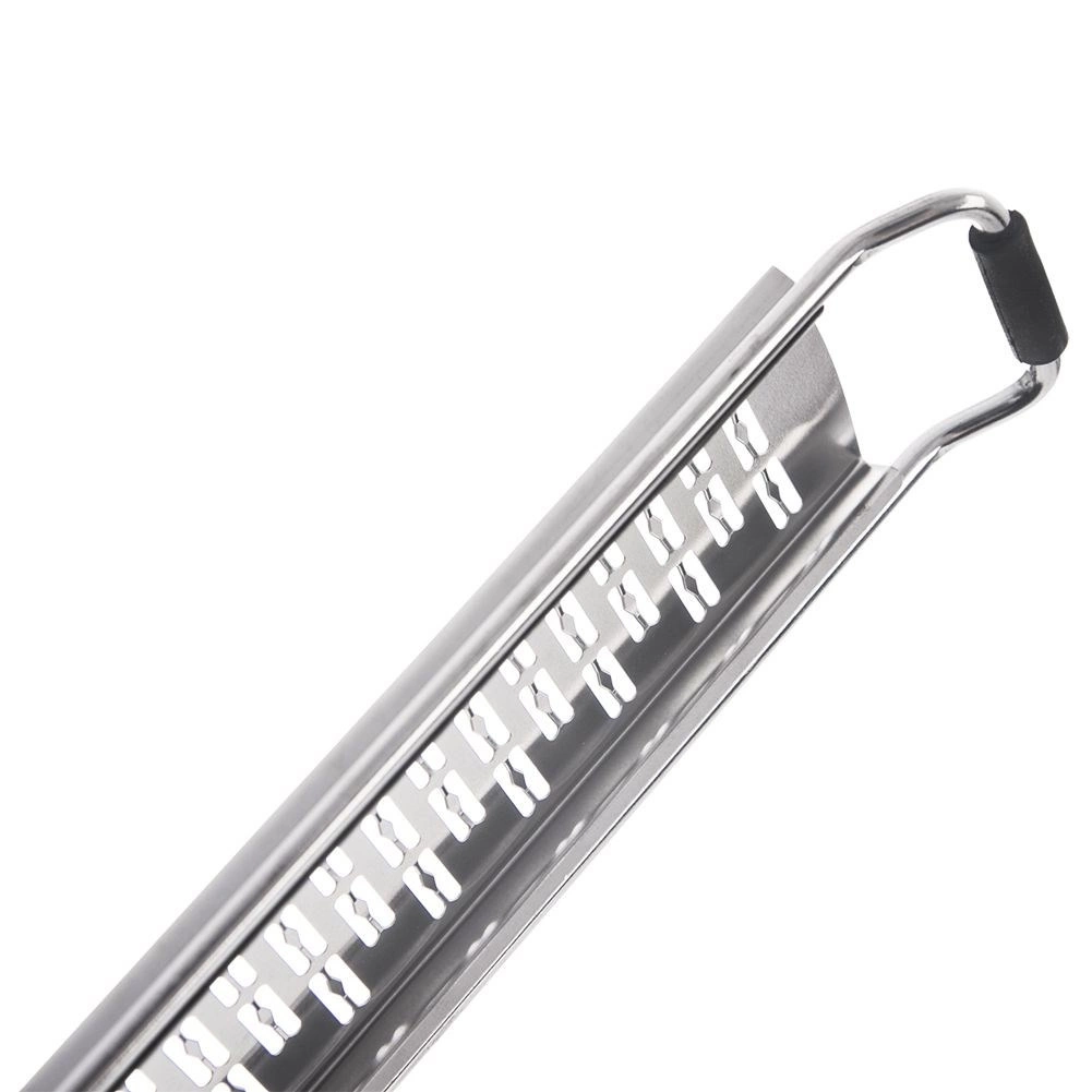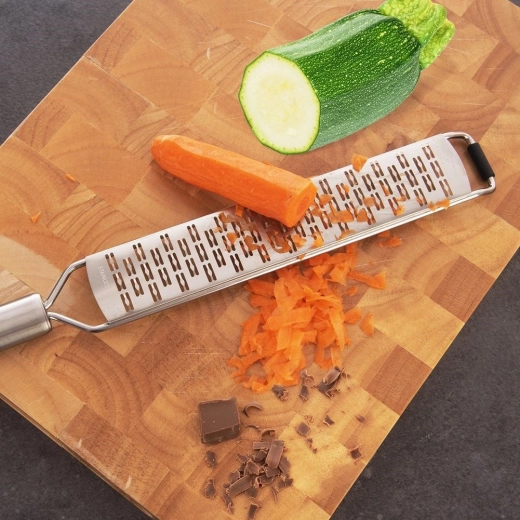 De universele platte rasp is een geweldige hulp voor dagelijks koken en bakken. De scherpe, geëtste snijvlakken werken in beide richtingen, zodat je sneller en met minder inspanning raspt. Ideaal voor wortels, aardappelen, courgette, rode biet, citrusrasp, chocolade en Parmezaan.