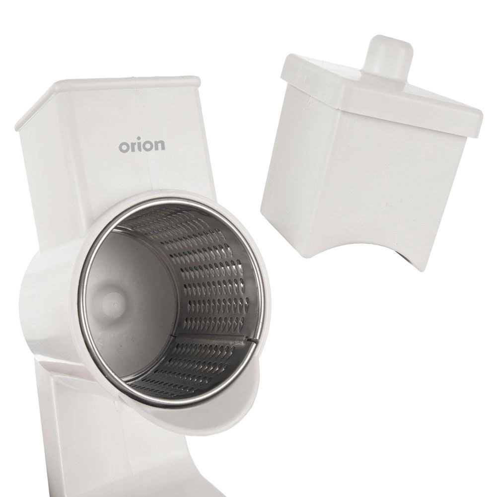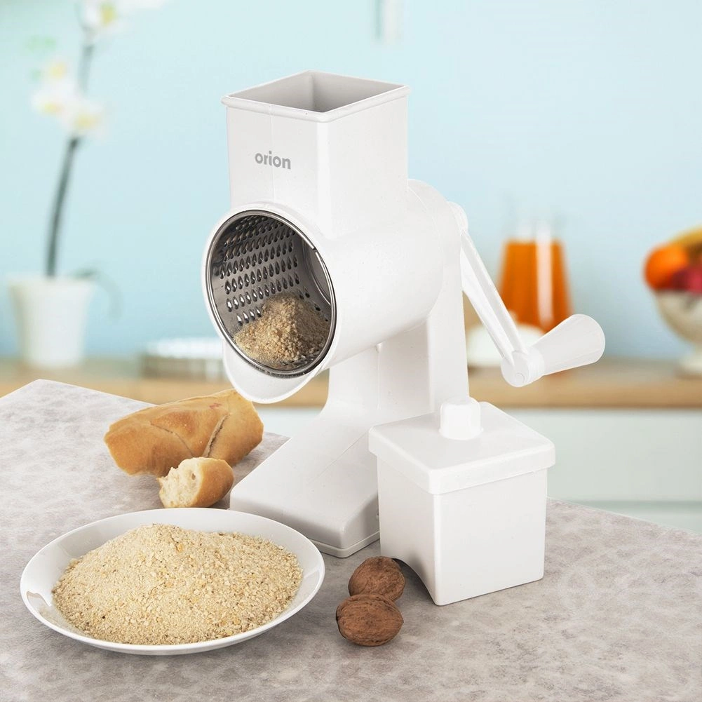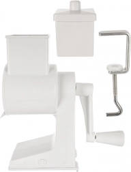 Ontdek een betrouwbare handrasp die onmisbaar wordt in elke keuken. De stevige kunststof behuizing in het wit en de roestvrijstalen trommel garanderen een lange levensduur en eenvoudig onderhoud. Dankzij de schroefklem voor aan het werkblad (max. 5,5 cm) blijft het apparaat tijdens het werk perfect stabiel.
