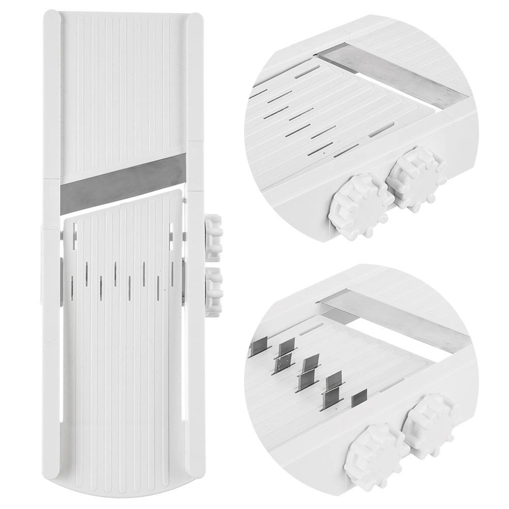 Scherpe messen van roestvrij staal zorgen voor een zuivere en gelijkmatige snede, terwijl de beschermhouder de ingrediënten stevig op hun plek houdt en het risico op verwondingen minimaliseert. Het gereedschap is gemakkelijk schoon te maken en vaatwasmachinebestendig, dus het onderhoud is zo gepiept.
