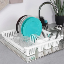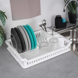Houd orde na het handafwassen met dit ruime afdruiprek, dat plaats biedt aan tot 12 borden, glazen en bestek. Geïntegreerde vakken en een uitneembare lekbak zorgen voor een efficiënte waterafvoer en een droog werkblad. Het minimalistische design in wit past in zowel moderne als klassieke keukens.