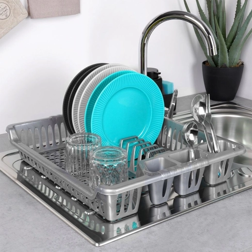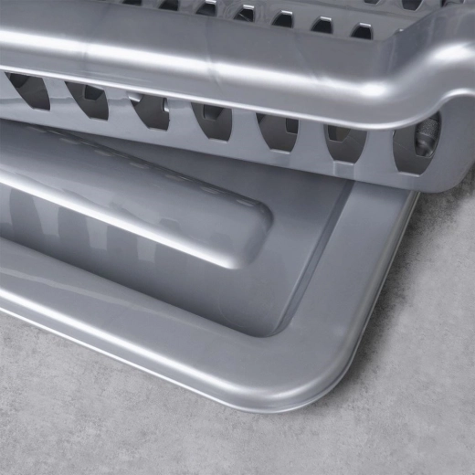 Dankzij het universele, tijdloze grijze design past het perfect in elke keuken. Het afdruiprek is makkelijk te reinigen en geschikt voor dagelijks gebruik – ideaal voor met de hand afgewassen borden, kommen, glazen en bestek.