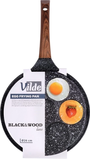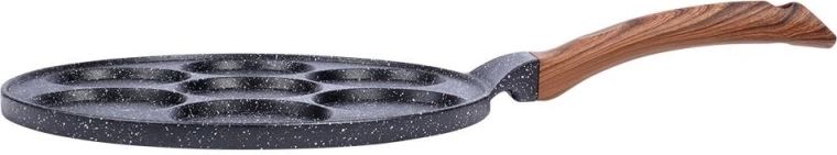 Maak perfect ronde spiegeleieren, pannenkoekjes of mini crêpes – deze pan met 7 holtes maakt elk ontbijtmenu eenvoudiger. De granieten antiaanbaklaag in zwart-grijze “stone” look voorkomt aanbranden en maakt gezonder bereiden met minimale olie mogelijk. De stijlvolle BLACK&WOOD-combinatie past perfect in een moderne keuken.
