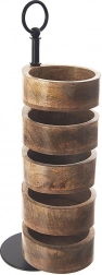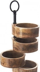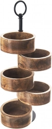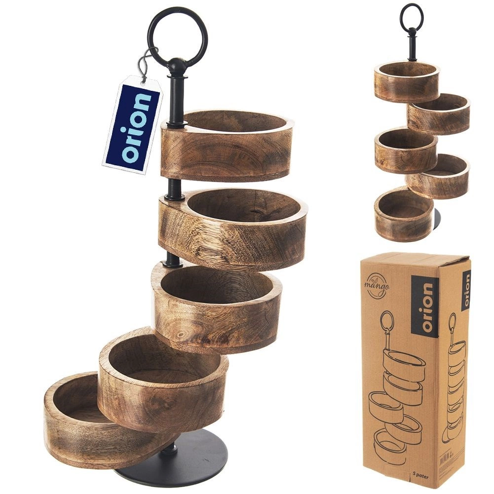 Deze meerlagige etagère van mangohout met een hoogte van 44,5 cm biedt een elegante manier om nootjes, chips, gedroogd fruit, snoep, koekjes of tapas te serveren. Vijf afzonderlijk draaibare schaaltjes maken een aantrekkelijke presentatie en gemakkelijke toegang voor gasten mogelijk. Het natuurlijke mangohout is bestand tegen vocht en vervorming, neemt geen geuren op en droogt snel.