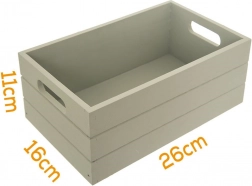 Praktische en stijlvolle houten krat met afmetingen 26 × 16 × 11 cm voor overzichtelijke opslag van kleinigheden in huis en op kantoor. Gemaakt van duurzaam hout, met een pastel lichtgroen oppervlak, een open bovenkant voor gemakkelijke toegang en handgrepen aan de zijkant voor comfortabel dragen. Perfect voor cosmetica, kantoorbenodigdheden, levensmiddelen, kruiden, fruit en groenten en ook als decoratief element in elk interieur.