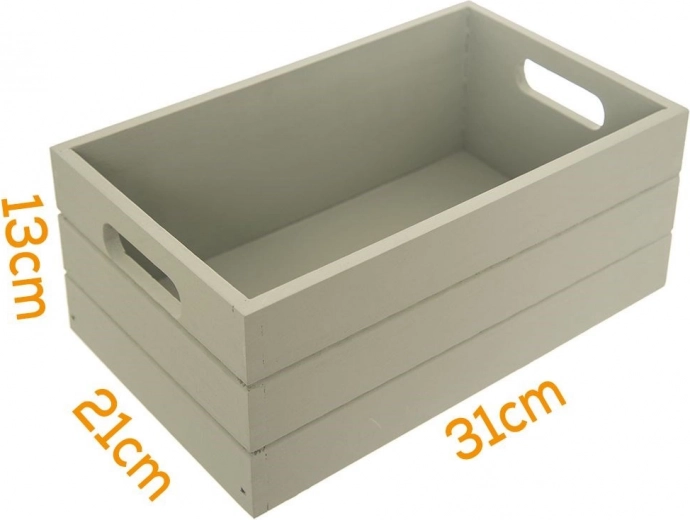 Stijlvol houten opbergkrat voor orde in huis met afmetingen 31 × 21 × 13 cm. Gemaakt van duurzaam hout, met zijhandgrepen voor gemakkelijk dragen en veelzijdig gebruik in keuken, kantoor of woonkamer. Ideaal voor cosmetica, kantoorspullen, etenswaren of kleine items en dient tegelijk als decoratief element. Stevige houten constructie, open bovenkant en praktische handgrepen maken dagelijks gebruik eenvoudig.
