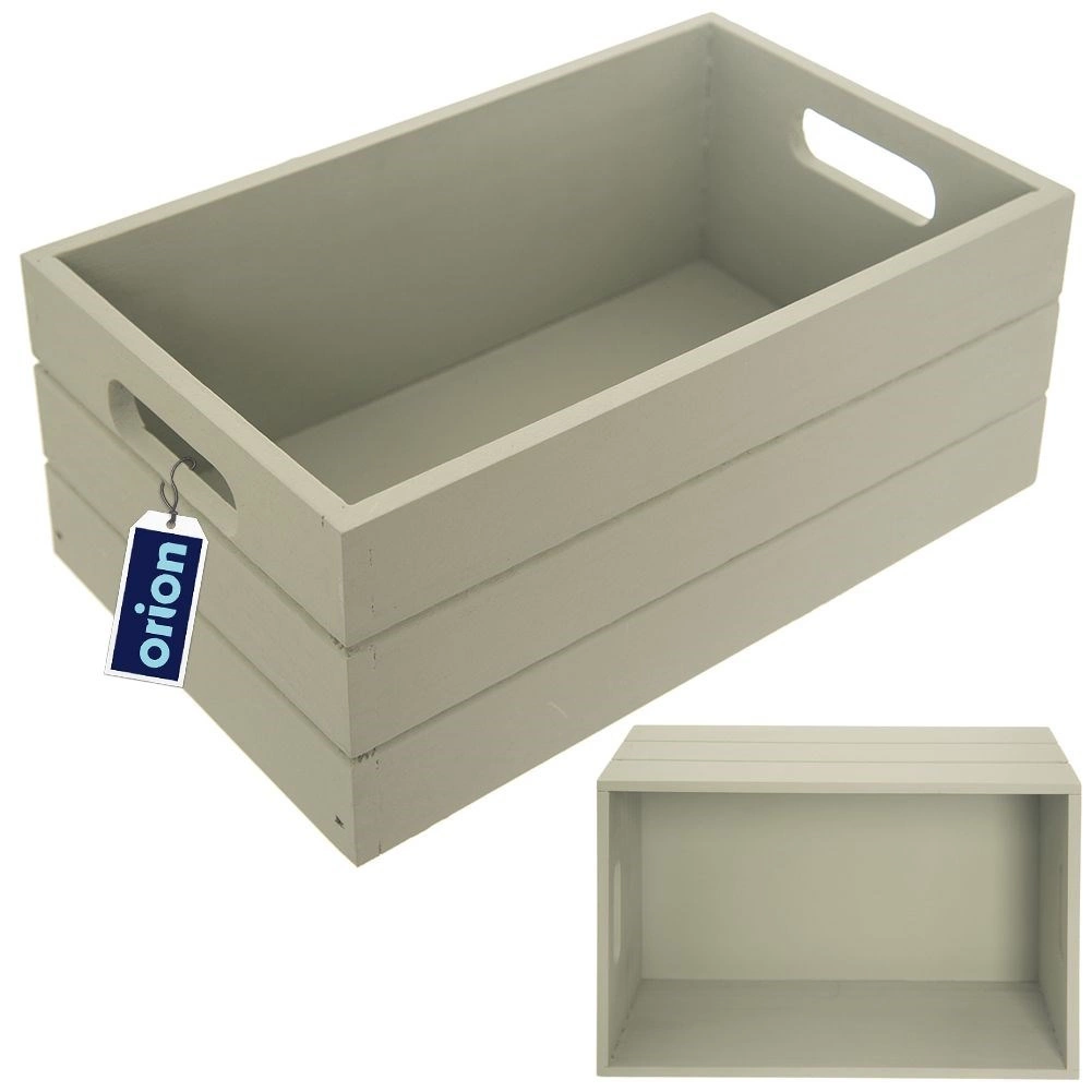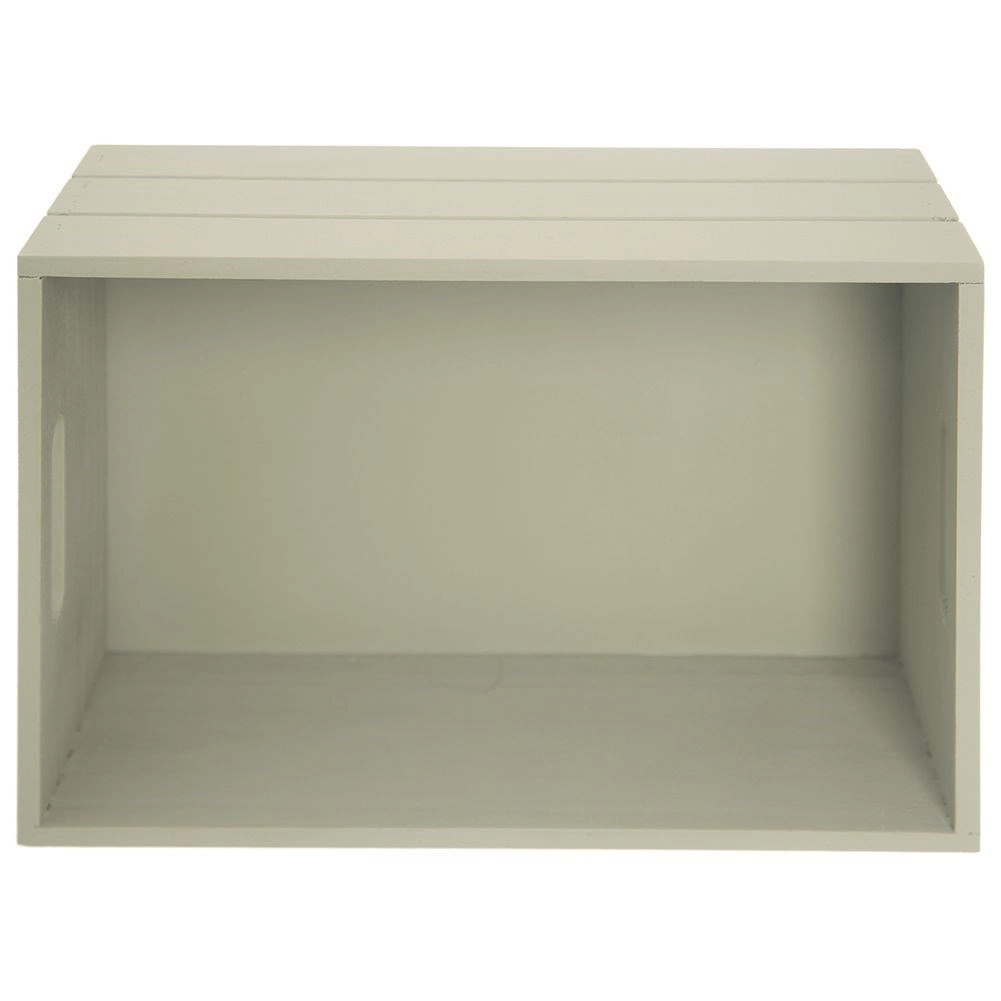 De elegante houten opbergkrat helpt orde te houden in huis en kantoor. Gemaakt van duurzaam hout en geverfd in pastel lichtgroen, wat een plank, dressoir of bureau opfrist. Dankzij de zijkantopeningen is hij eenvoudig te dragen.