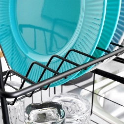 Maximaliseer de ruimte bij de gootsteen met dit compacte en stabiele afdruiprek dat alles bevat wat u nodig heeft – van borden en glazen tot bestek. De tweeledige indeling zorgt voor snellere luchtcirculatie en dus sneller drogen, terwijl de uitneembare lekbak het werkblad vrij houdt van natte plekken.