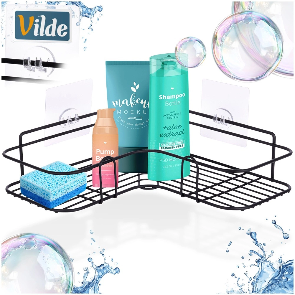 De zelfklevende hoekdoucheplank is een uitstekende oplossing voor elke badkamer in moderne loftstijl. Dankzij de stevige metalen constructie met matzwarte poedercoating is hij stabiel, duurzaam en gemakkelijk schoon te maken. Geschikt voor het opbergen van shampoos, gels, borstels en sponsjes, en ook te gebruiken in de keuken als kruidenrek. Inclusief transparante zelfklevende pads voor snelle installatie zonder de tegels te beschadigen.
