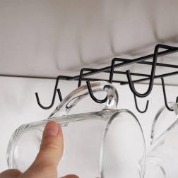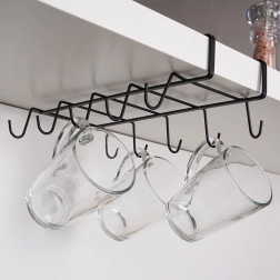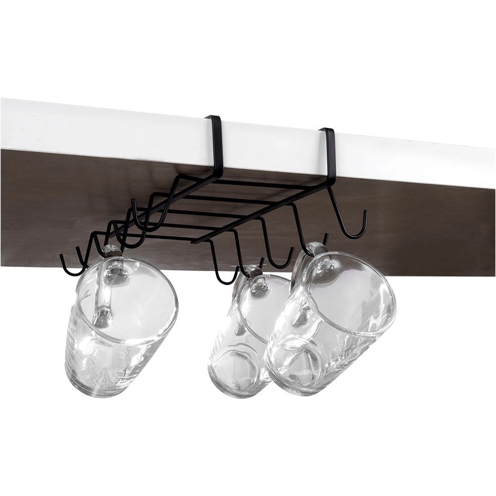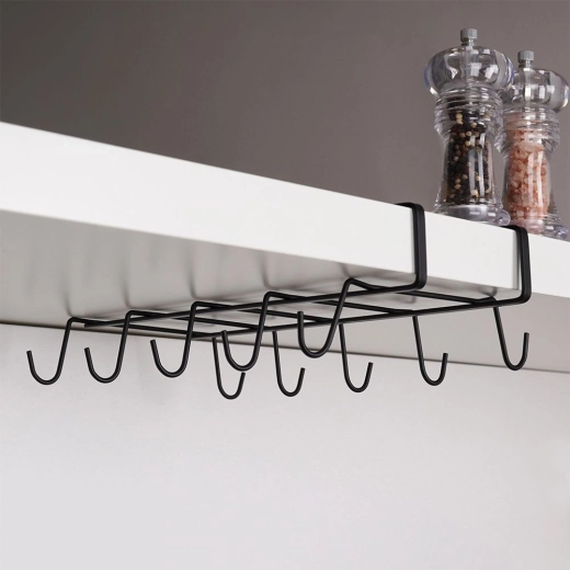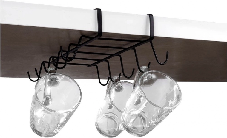 Deze praktische hangende houder onder planken en kastjes helpt je de keuken te organiseren en de verticale ruimte optimaal te benutten. Dankzij de tien haken berg je makkelijk mokken, kopjes en keukentoebehoren op. De matzwarte afwerking geeft het interieur een loft-uitstraling.